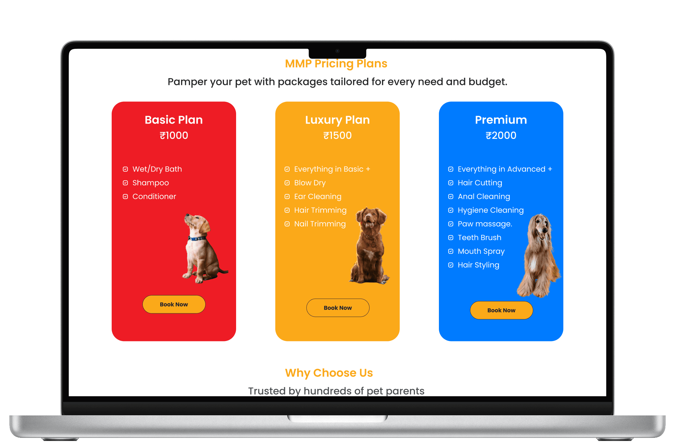 This project focuses on redesigning a Dog Grooming Service web page to create a more engaging, user-friendly, and visually appealing experience. The goal was to modernize the interface and improve the usability while keeping the brand approachable and pet-friendly.