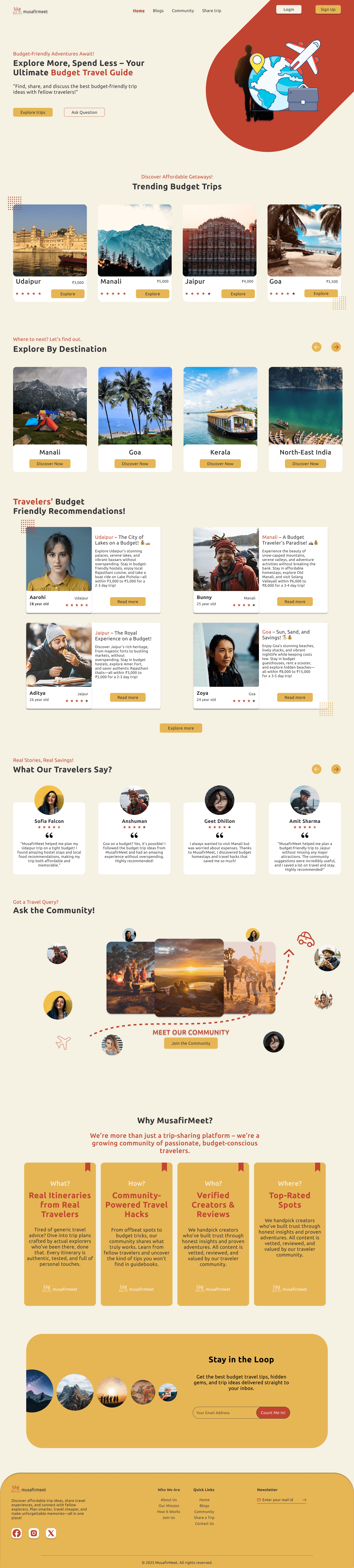 MusafirMeet is a budget travel platform designed to help travelers discover affordable trip plans, share experiences, and engage with a community of like-minded explorers. It features curated blogs, user-contributed travel ideas, and a forum for discussions, making travel more accessible and cost-effective. MusafirMeet also allows users to ask travel-related queries, get recommendations, and contribute their own budget-friendly trip experiences. With a focus on affordability and community-driven insights, it serves as a go-to platform for smart travelers looking to explore India without overspending.