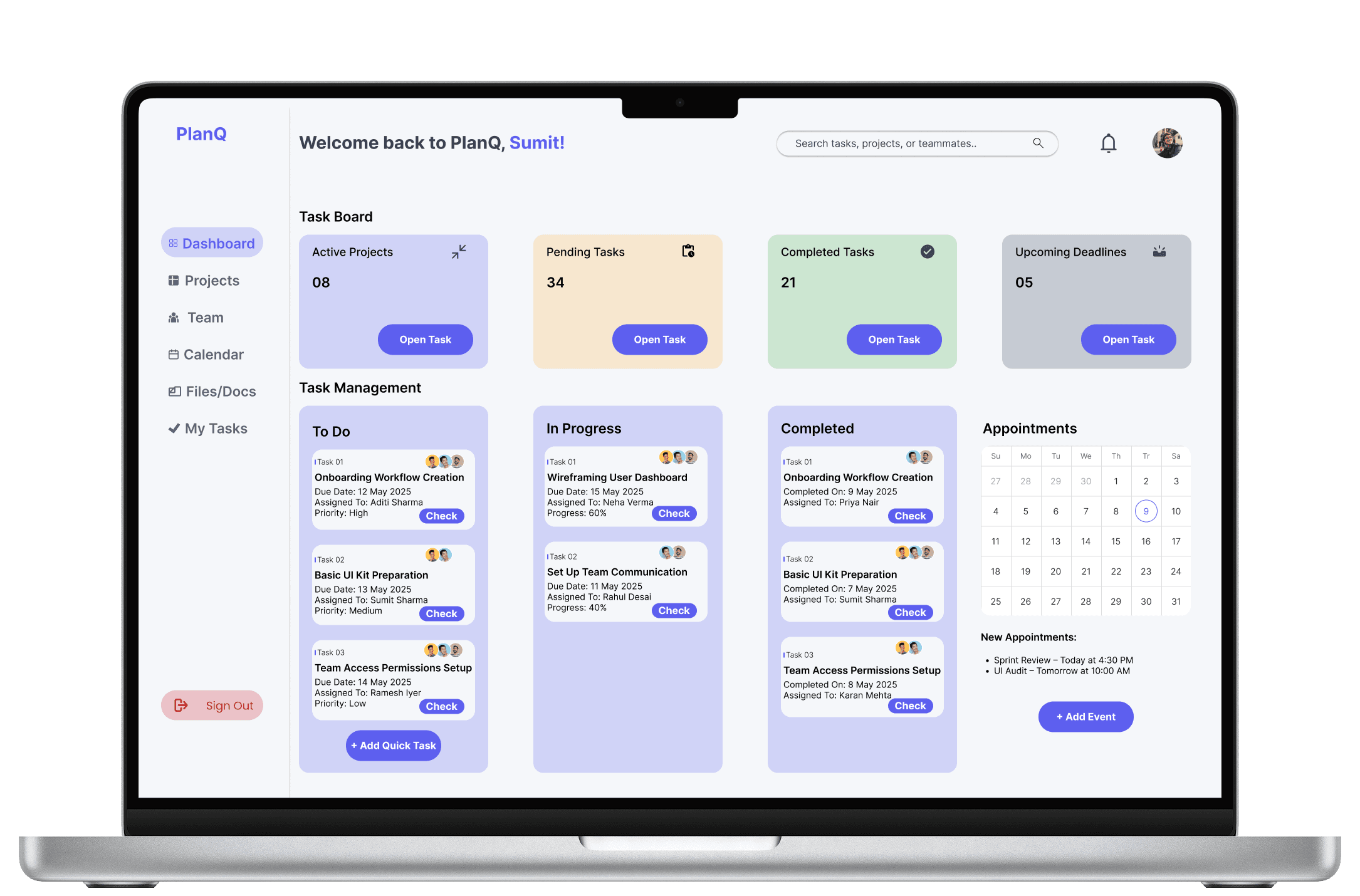 PlanQ is a modern, minimal, and intuitive dashboard UI crafted to simplify how users manage their daily tasks and workflows. Designed with a user-first approach, the interface blends clarity with functionality, helping users focus on what matters most—getting things done.